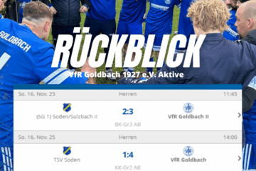 (SG) Soden/Sulzbach II – VfR Goldbach II 2:3 Auswärtssieg – die Zwote marschiert weiter Zum letzten Spiel des Jahres reisten wir mit der Zwoten zur SG Soden / Sulzbach II nach Soden. Wir zeigten in der 1.Hälfte ein sehr gutes Weiterlesen…