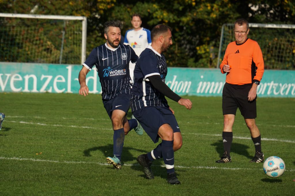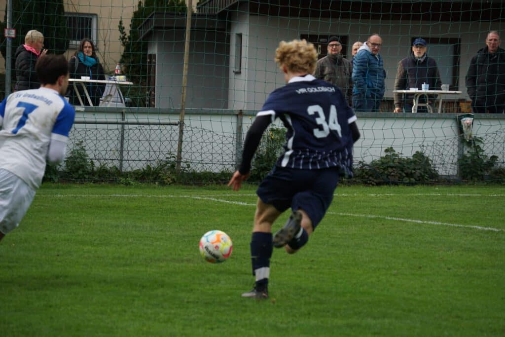 Am Sonntag hatten wir auf unserem Rasenplatz die Mannschaft vom SV Großwallstadt zu Gast. Neben den beiden Langzeitverletzten Giani und Kulle, fehlten auch Lenny, Lucas und Emil. Beim Warmmachen musste dann auch noch Carlo kurzfristig seinen Einsatz canceln. Wir pfeifen aktuell personell aus dem letzten Loch. Großwallstadt legte los wie die Feuerwehr und schnürte uns in der eigenen Hälfte ein. Durch die vielen Diagonalbälle von Spielertrainer Bystrek und die schnellen Außenspieler entstand immer wieder Torgefahr und unsere Defensive hatte einiges zu tun. In der 12. und 15. Minute gab es eine Doppelchance für den Gast und wir hatten Glück, nicht schon früh in Rückstand zu geraten. In der 22. Minute ging Großwallstadt durch einen Fernschuss mit 0:1 in Front. In der 25. Minute hatten wir durch Fynn eine gute Chance, doch leider konnte er den Ball nicht im Tor unterbringen, nachdem er den Torwart schon umkurvt hatte. Mitten in unserer besten Phase der 1.Hälfte wurden wir klassisch ausgekontert und mussten in der 38. Minute das 0:2 schlucken. Mit diesem Spielstand ging es in die Pause. Direkt nach der HZ hatten wir Glück, als ein Ball nur an unseren Außenposten klatschte. Das war der Weckruf für unsere Mannschaft, die ab dann ein klasse Spiel zeigte, insbesondere in kämpferischer Hinsicht. Unser Kapitän Schuhmi nahm sich ein Herz und verkürzte mit einem gefühlvollen Freistoß aus etwa 25 Metern in der 60. Minute zum 1:2 Anschlusstreffer. Nur 2 Minuten später erzielten wir nach einer schönen Kombination von Kreshe und Fynn über die linke Seite den 2:2 Ausgleich, nachdem die Flanke von Fynn zu kurz abgewehrt wurde und Luis abstauben konnte aus 2 Metern. Danach hatte man plötzlich das Gefühl, dass die zuvor spielerisch überlegenen Großwallstädter Angst vor der eigenen Courage hatten und konditionell einbrachen. Wir hatten in der Folge durch Domi 2 hundertprozentige Chancen, die leider ungenutzt blieben. Und dann bewahrheitete sich leider die alte Fußballweisheit „Stehst du unten drin, klebt dir das Pech an den Stiefeln – bist du oben dabei, hast du das nötige Glück“. In der 87. Minute zog ein Großwallstädter aus 25 Metern Torentfernung ab. Dustin war zwar in der Ecke, aber der Ball sprang zuvor noch mal unglücklich auf dem holprigen Rasen und rutschte so über die Hände unseres Keepers ins Tor zum 2:3. Nach 4 Minuten Nachspielzeit pfiff der sehr gute Schiedsrichter Christian Menig das Spiel ab und wir stehen wieder ohne Punkte da. Man muss ehrlicherweise sagen, dass wir in der 1.Hälfte schon deutlich und uneinholbar hätten zurückliegen können bei konsequenterer Nutzung der Torchancen durch Großwallstadt. Was unser stark ersatzgeschwächtes Team ab der 60.Minute zeigte, war eine wirklich klasse Leistung. Jeder kämpfte für den anderen und opferte sich auf, bis der Körper nicht mehr mitmachte. Wir hatten eine der spielstärksten Mannschaften in der Klasse am Rande einer Niederlage. Das sollte uns Mut machen für die nächsten Aufgaben vor der Winterpause, wo wir allerdings dringend punkten sollten, um nicht noch tiefer in der Tabelle abzurutschen und die Distanz zu den Plätzen vor uns zu verkürzen.