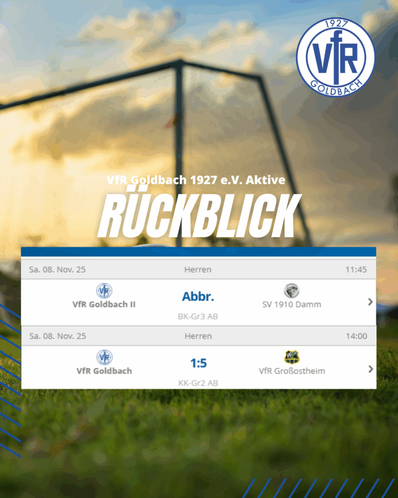 Am Kerbsamstag gastierte der Tabellenführer VfR Großostheim bei uns auf dem Kunstrasenplatz in Goldbach. Unser Ziel war es, die spielerisch und läuferisch starken Gäste nicht ins Spiel kommen zu lassen und Beton anzurühren. Bis zur 20.Minuten konnten wir das Spiel offen gestalten und hatten sogar 1-2 gute Torabschlüsse, die allerdings schnell verpufften. In der 24.Minute ging Großostheim durch einen berechtigten Foulelfmeter mit 0:1 in Führung und dieses Tor zog uns früh den Stecker. Nur 3 Minuten später mussten wir das 0:2 schlucken und in der 30. Minute erhöhte der pfeilschnelle Oberle mit einem Doppelpack auf 0:3. Es ergaben sich weitere Tormöglichkeiten für den Gast, doch Dustin hielt mit einigen Paraden das Ergebnis halbwegs in Grenzen. Mit diesem 3-Torerückstand ging es in die Pause. Innerhalb von 4 Minuten schraubten die Großostheimer in der 2.Hälfte in der 53. Und 57. Minute das Ergebnis auf 0:5 hoch. Der Tabellenführer ließ den Ball sehr gut laufen und fast jede gefährliche Aktion wurde vom Ex-Goldbacher Manuel Schneider eingeleitet, der im Mittelfeld geschickt die Fäden zog. In der 74. Minute konnten wir durch Fynn wenigstens noch den Anschlusstreffer zum 1:5 Endstand erzielen. Der souveräne Tabellenführer zeigte uns am Samstag klar die Grenzen auf und machte uns vor, wie man spielen muss. Alle Spieler waren topfit und ständig in Bewegung, während wir oftmals viel zu umständlich spielten, mit unnötigen 5-6 Ballkontakten in 3 Gegner rannten, weil allerdings auch niemand von uns anspielbar war. Auch wenn der Gegner vom Samstag nicht unsere Kragenweite ist, muss man endlich verstehen, dass deutlich mehr Einsatz nötig sein wird, um die Klasse zu halten. Nächste Woche geht es bereits zum 2. Spiel in der Rückrunde und viel Zeit ist nicht mehr, um endlich den Hebel umzulegen und zu punkten. Wir können nur gemeinsam den Gang in die A-Klasse vermeiden und es sollte jetzt endlich jeder Spieler verstanden haben, wie prekär die Situation ist.